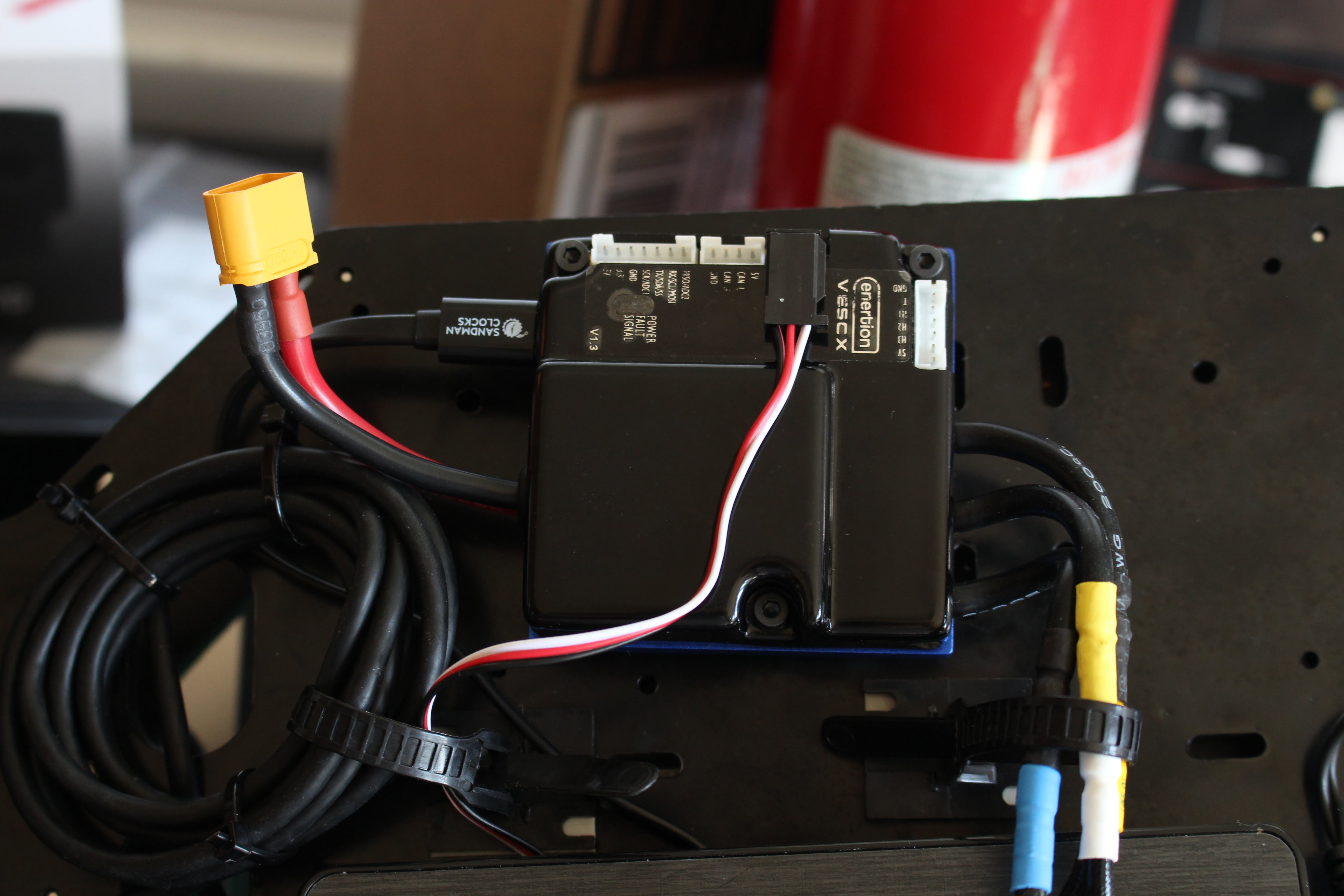 For the Jetson RACECAR, we replace the stock TRAXXAS ESC with a Vedder Electronic Speed Controller (VESC). The major reason for the change is to gain full control at low speeds. The stock ESC puts the minimum vehicle speed at around 6 mph. Another reason is that the VESC is open source, which allows the curious to explore the motor controller implementation.