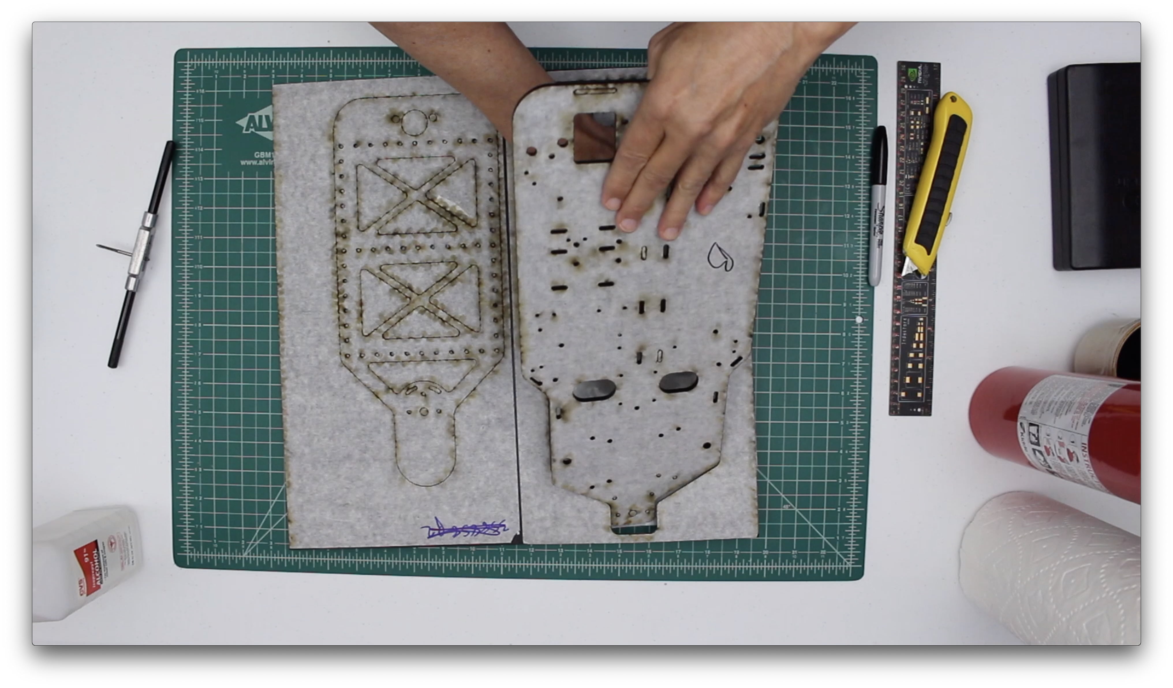 If you order the FlatNose Platform Decks from the RACECAR/J shop, the decks are delivered as a single piece of Delrin protected by an overlay sheet. As shown in the video, remove the decks from the sheet and remove the overlay sheet.